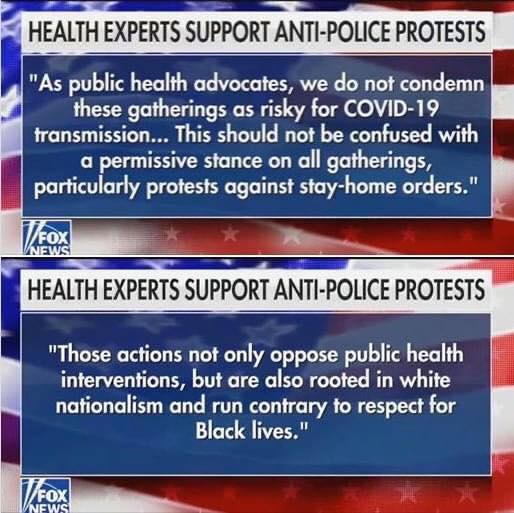 “Trusted” Media sources are gonna explain to you that you MUST continue social distancing and washing your hands, and keep wearing your masks, and stay home to save lives that matter, because those are the ONLY ways for YOU to feel good about having done YOUR part to keep others safe. But don’t get too mixed up, “Trusted” Media sources say ‘Health Experts’ give a green light AND police escorts for you, if you have a righteous reason, to congregate and block major interstate highways.