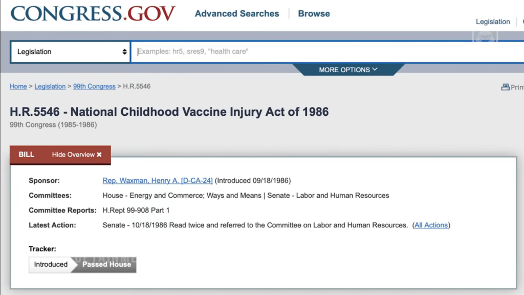 The Vaccine Act [1986] https://www.congress.gov/bill/99th-congress/house-bill/5546